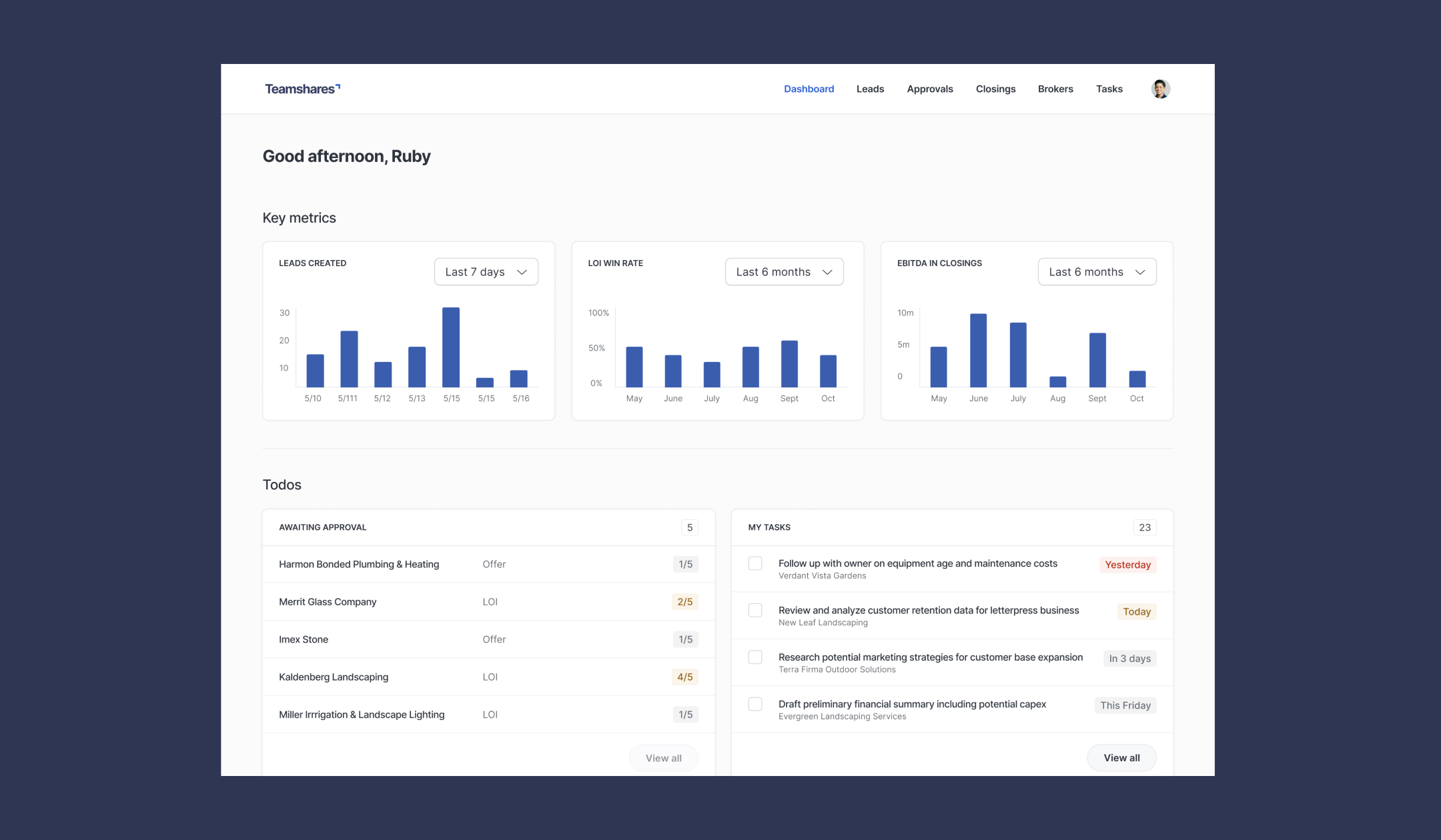 A lead management platform that powered sourcing, evaluation, and tracking across Teamshares’ growing deal pipeline.